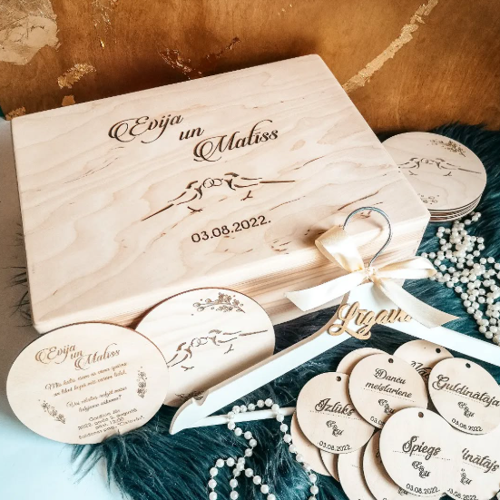 Papildus iespējams lādes iekšpusē ielīmēt figūriņu ar gravējumu, piemēram, norādot dzimšanas datus, zvaigznāju vai ko citu.